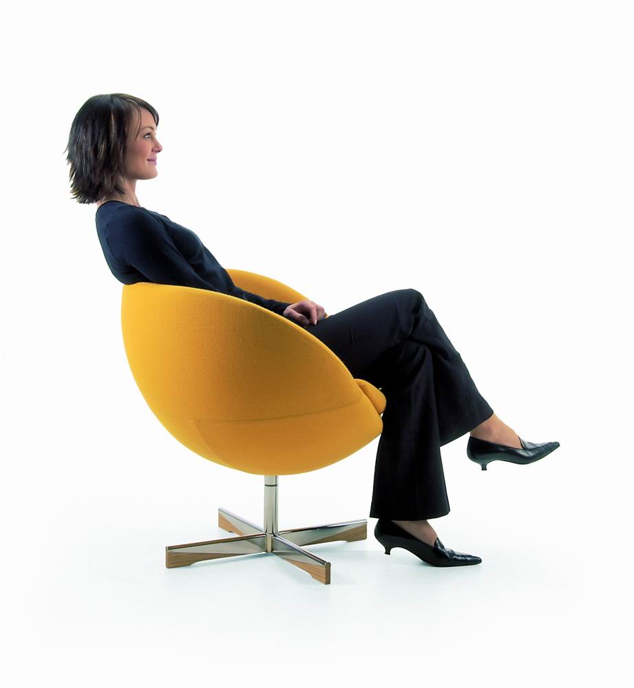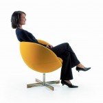 Questa specie di mezza palla è la poltrona Planet: ricorda a tratti un tulipano o una bocca, e ha la caratteristica forma semi sferica. Il piedistallo è collegato con una serie di molle che permettono l’inclinazione all’indietro (per appoggiare i piedi sul tavolino magari) e per quanto mi riguarda la trovo scomoda. Di certo in un salotto o in uno studio si fa notare, e per brevi attese può essere un’idea interessante dato che starci seduti da come un’idea di intimità. Purtroppo la postura che si assume invece da un’idea di provvisorietà, come se ci si dovesse alzare dopo poco per cercare un divano più comodo. Costo? cara! (oltre 900 euro)